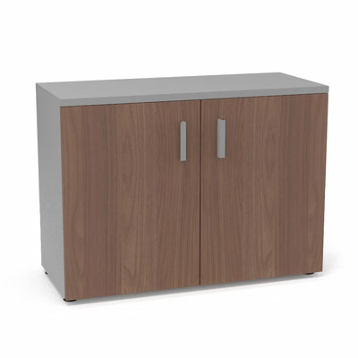 Armoire mélamine Armand 1 tablette H. 73,5 x L. 100 x P. 43,2 cm corps et top finition mélamine gris aluminium avec 2 portes soft-closing mélamine noyer ambré