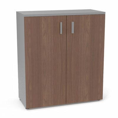 Armoire mélamine Armand 2 tablettes H. 113,5 x L. 100 x P. 43,2 cm corps et top finition mélamine gris aluminium avec 2 portes soft-closing mélamine noyer ambré