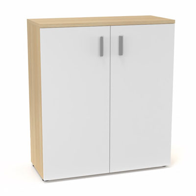 Armoire mélamine Armand 2 tablettes H. 113,5 x L. 100 x P. 43,2 cm corps et top finition mélamine chêne clair avec 2 portes soft-closing mélamine blanc neige
