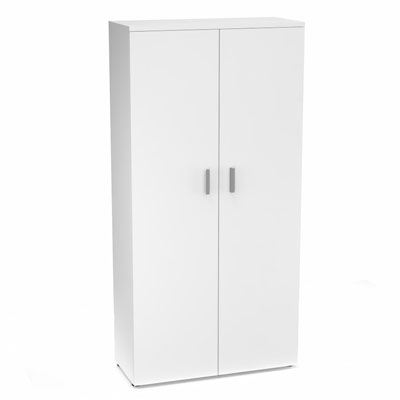 Armoire mélamine Armand 4 tablettes H. 202,1 x L. 100 x P. 43,2 cm corps et top finition mélamine blanc neige avec 2 portes soft-closing mélamine blanc neige