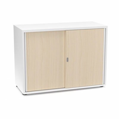 Armoire Armand 2 portes coulissantes H. 73,5 x L. 100 x P. 43,2 cm - 1 tablette - corps mélamine blanc neige - portes mélamine érable blanc