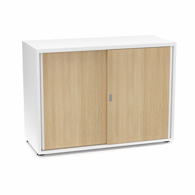 Armoire Armand 2 portes coulissantes H. 73,5 x L. 100 x P. 43,2 cm - 1 tablette - corps mélamine blanc neige - portes mélamine chêne clair
