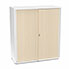 Armoire Armand 2 portes coulissantes H. 113,5 x L. 100x P. 43,2 cm - 2 tablettes - corps mélamine blanc neige - portes mélamine érable blanc