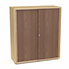 Armoire Armand 2 portes coulissantes H. 113,5 x L. 100x P. 43,2 cm - 2 tablettes - corps mélamine chêne clair - portes mélamine noyer ambré