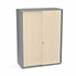 Armoire Armand 2 portes coulissantes H. 133,5 x L. 100x P. 43,2 cm - 3 tablettes - corps mélamine gris aluminium - portes mélamine érable blanc