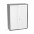 Armoire Armand 2 portes coulissantes H. 133,5 x L. 100x P. 43,2 cm - 3 tablettes - corps mélamine gris aluminium - portes mélamine blanc neige