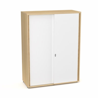 Armoire Armand 2 portes coulissantes H. 133,5 x L. 100x P. 43,2 cm - 3 tablettes - corps mélamine chêne clair - portes mélamine blanc neige