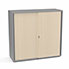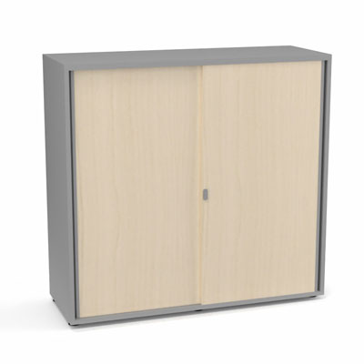 Armoire Armand 2 portes coulissantes H. 113,5 x L. 120 x P. 43,2 cm - 2 tablettes - corps mélamine gris aluminium - portes mélamine érable blanc