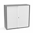 Armoire Armand 2 portes coulissantes H. 113,5 x L. 120 x P. 43,2 cm - 2 tablettes - corps mélamine gris aluminium - portes mélamine blanc neige