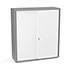 Armoire Armand 2 portes coulissantes H. 133,5 x L. 120 x P. 43,2 cm - 3 tablettes - corps mélamine gris aluminium - portes mélamine blanc neige