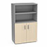 Armoire bibliothèque Armand mélamine 3 tablettes H. 133,5 x L. 80 x P. 43,2 cm corps et top finition mélamine gris aluminium avec 2 portes H. 735 cm mélamine érable blanc