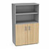 Armoire bibliothèque Armand mélamine 3 tablettes H. 133,5 x L. 80 x P. 43,2 cm corps et top finition mélamine gris aluminium avec 2 portes H. 735 cm mélamine chêne clair