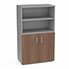 Armoire bibliothèque Armand mélamine 3 tablettes H. 133,5 x L. 80 x P. 43,2 cm corps et top finition mélamine gris aluminium avec 2 portes H. 735 cm mélamine noyer ambré
