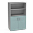 Armoire bibliothèque Armand mélamine 3 tablettes H. 133,5 x L. 80 x P. 43,2 cm corps et top finition mélamine gris aluminium avec 2 portes H. 735 cm verre dépoli transparent