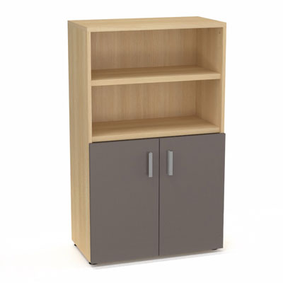 Armoire bibliothèque Armand mélamine 3 tablettes H. 133,5 x L. 80 x P. 43,2 cm corps et top finition mélamine chêne clair avec 2 portes H. 735 cm verre émaillé gris souris