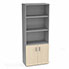 Armoire bibliothèque Armand mélamine 4 tablettes H. 202,1 x L. 80 x P. 43,2 cm corps et top finition mélamine gris aluminium avec 2 portes soft-closing H. 735 cm mélamine érable blanc