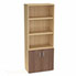 Armoire bibliothèque Armand mélamine 4 tablettes H. 202,1 x L. 80 x P. 43,2 cm corps et top finition mélamine chêne clair avec 2 portes soft-closing H. 735 cm mélamine noyer ambré