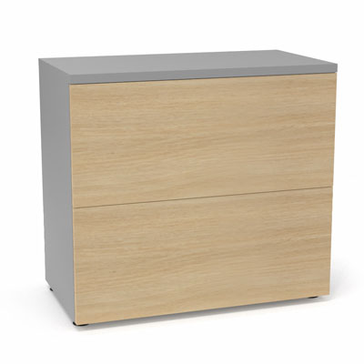 Classeur 2 tiroirs Armand H. 73,5 x L. 80 x P. 43,2 cm corps et top finition mélamine gris aluminium avec 2 tiroirs pour dossiers suspendus mélamine chêne clair