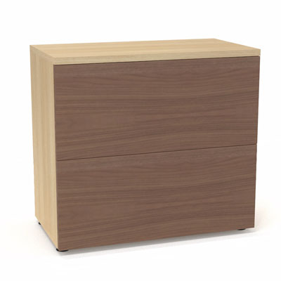 Classeur 2 tiroirs Armand H. 73,5 x L. 80 x P. 43,2 cm corps et top finition mélamine chêne clair avec 2 tiroirs pour dossiers suspendus mélamine noyer ambré