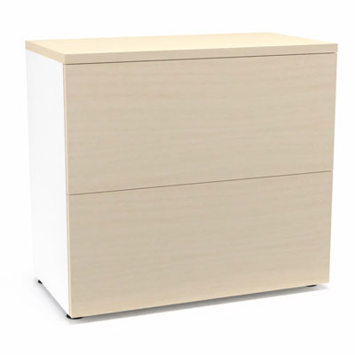 Classeur 2 tiroirs Armand H. 73,5 x L. 80 x P. 43,2 cm corps finition mélamine blanc neige avec 2 tiroirs pour dossiers suspendus et top mélamine érable blanc