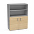 Armoire bibliothèque Armand mélamine 3 tablettes H. 133,5 x L. 100 x P. 43,2 cm corps et top finition mélamine gris aluminium avec 2 portes H. 735 cm mélamine chêne clair