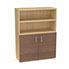 Armoire bibliothèque Armand mélamine 3 tablettes H. 133,5 x L. 100 x P. 43,2 cm corps et top finition mélamine chêne clair avec 2 portes H. 735 cm mélamine noyer ambré