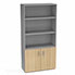 Armoire bibliothèque Armand mélamine 4 tablettes H. 202,1 x L. 100 x P. 43,2 cm corps et top finition mélamine gris aluminium avec 2 portes H. 735 cm mélamine chêne clair