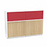 Meuble comptoir séparateur Armand H. 135 x L. 165 x P. 43,2 cm - 2 tablettes - corps mélamine blanc neige - portes mélamine chêne clair/altuglas rouge satin