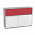 Meuble comptoir séparateur Armand H. 135 x L. 165 x P. 43,2 cm - 2 tablettes - corps mélamine gris aluminium - portes mélamine blanc neige/altuglas rouge satin