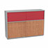 Meuble comptoir séparateur Armand H. 135 x L. 165 x P. 43,2 cm - 2 tablettes - corps mélamine gris aluminium - portes mélamine pommier de France/altuglas rouge satin