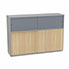 Meuble comptoir séparateur Armand H. 135 x L. 165 x P. 43,2 cm - 2 tablettes - corps mélamine gris aluminium - portes mélamine chêne clair/altuglas gris fumé
