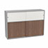 Meuble comptoir séparateur Armand H. 135 x L. 165 x P. 43,2 cm - 2 tablettes - corps mélamine gris aluminium - portes mélamine noyer ambré/altuglas blanc satin