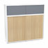 Meuble comptoir séparateur Armand H. 156 x L. 165 x P. 43,2 cm - 3 tablettes - corps mélamine blanc neige - portes mélamine chêne clair/altuglas gris fumé