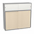 Meuble comptoir séparateur Armand H. 156 x L. 165 x P. 43,2 cm - 3 tablettes - corps mélamine gris aluminium - portes mélamine érable blanc/altuglas blanc satin