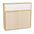 Meuble comptoir séparateur Armand H. 156 x L. 165 x P. 43,2 cm - 3 tablettes - corps mélamine chêne clair - portes mélamine érable blanc/altuglas blanc satin