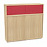 Meuble comptoir séparateur Armand H. 156 x L. 165 x P. 43,2 cm - 3 tablettes - corps mélamine chêne clair - portes mélamine chêne clair/altuglas rouge satin