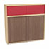 Meuble comptoir séparateur Armand H. 156 x L. 165 x P. 43,2 cm - 3 tablettes - corps mélamine chêne clair - portes mélamine noyer ambré/altuglas rouge satin