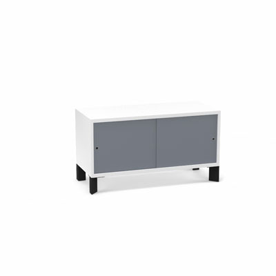 Module bas Armand H. 55,2 x L. 100 x P. 43,2 cm corps mélamine blanc neige - portes altuglas gris fumé
