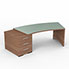 Bureau Kara courbe L. 238 x P. 90 cm décor mélamine noyer ambré avec voile de fond sur 1 caisson porteur 3 tiroirs avec top verre émaillé blanc -1 pied panneau mélamine noyer ambré