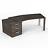 Bureau cintré Kara L. 238 x P. 90 cm mélamine chêne royal brun - caisson porteur 3 tiroirs top mélamine - 2 pieds carrés métal lisse gris aluminium 2 faces bois mélamine chêne royal brun