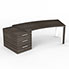 Bureau cintré Kara L. 238 x P. 90 cm mélamine chêne royal brun - caisson porteur 3 tiroirs top mélamine - 2 pieds carrés métal lisse blanc 2 faces bois mélamine chêne royal brun