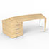 Bureau cintré Kara L. 238 x P. 90 cm mélamine chêne clair - caisson porteur 3 tiroirs top mélamine - 2 pieds carrés métal lisse blanc 2 faces bois mélamine chêne clair
