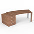 Bureau cintré Kara L. 238 x P. 90 cm mélamine noyer ambré - caisson porteur 3 tiroirs top mélamine - 2 pieds carrés métal lisse gris aluminium 2 faces bois mélamine noyer ambré