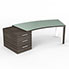 Bureau cintré Kara L. 238 x P. 90 cm mélamine chêne royal brun - caisson porteur 3 tiroirs top verre émaillé blanc - 2 pieds carrés métal lisse blanc 2 faces bois mélamine chêne royal brun