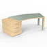 Bureau cintré Kara L. 238 x P. 90 cm mélamine chêne clair - caisson porteur 3 tiroirs top verre émaillé blanc - 2 pieds carrés métal lisse gris aluminium 2 faces bois mélamine chêne clair