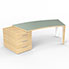 Bureau cintré Kara L. 238 x P. 90 cm mélamine chêne clair - caisson porteur 3 tiroirs top verre émaillé blanc - 2 pieds carrés métal lisse blanc 2 faces bois mélamine chêne clair
