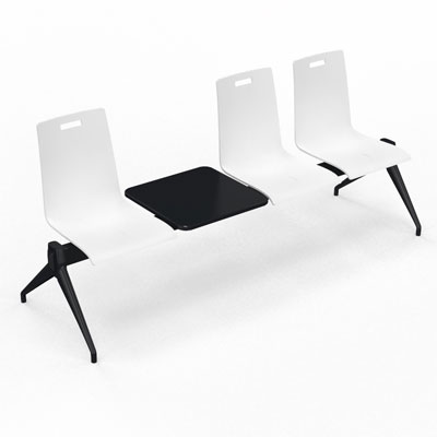 Poutre Evasion 3 places et 1 tablette - poutre structure métal lisse noir - assise hêtre multipli teinté blanc