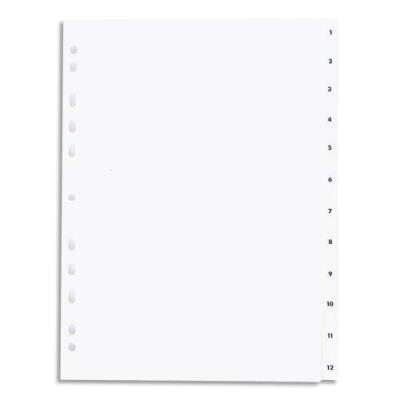 Intercalaires Pergamy - polypropylène - A4 - numérique 1-12 - blanc - jeu de 12