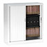 L'armoire est équipée de 2 tablettes métal noir pour dossiers suspendus à lecture verticale, réglables tous les 2,5 cm. Volume de classement par tablette : environ 100 dossiers suspendus à fond « V » ou 13 classeurs dos 7,5 cm. 3 niveaux de classement de dossiers suspendus et 2 de classeurs sont possibles. Une tablette fixe en partie haute de l'armoire, indépendante du dessus, permet de recevoir une charge élevée de dossiers suspendus sans déformer le dessus de l'armoire. Des tablettes supplémentaires et un châssis télescopique sont disponibles en option sur cette armoire L120 cm.