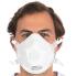 masque blanc en PP, jetable, la soupape évite l'accumulation de chaleur, 2 élastiques de tête, pince nasale flexible, coussinet nasal doux, résistance respiratoire minimale, en paquet de 10 pièces (29355) pour la fine poussière de dolomite, les aérosols solides & liquides et les risques plus élevés, lèvre d'étanchéité souple, convient pour les porteurs de lunettes ce masque ne correspond pas aux prescriptions des autorités sanitaires dans le cadre de la lutte contre la Covid-19